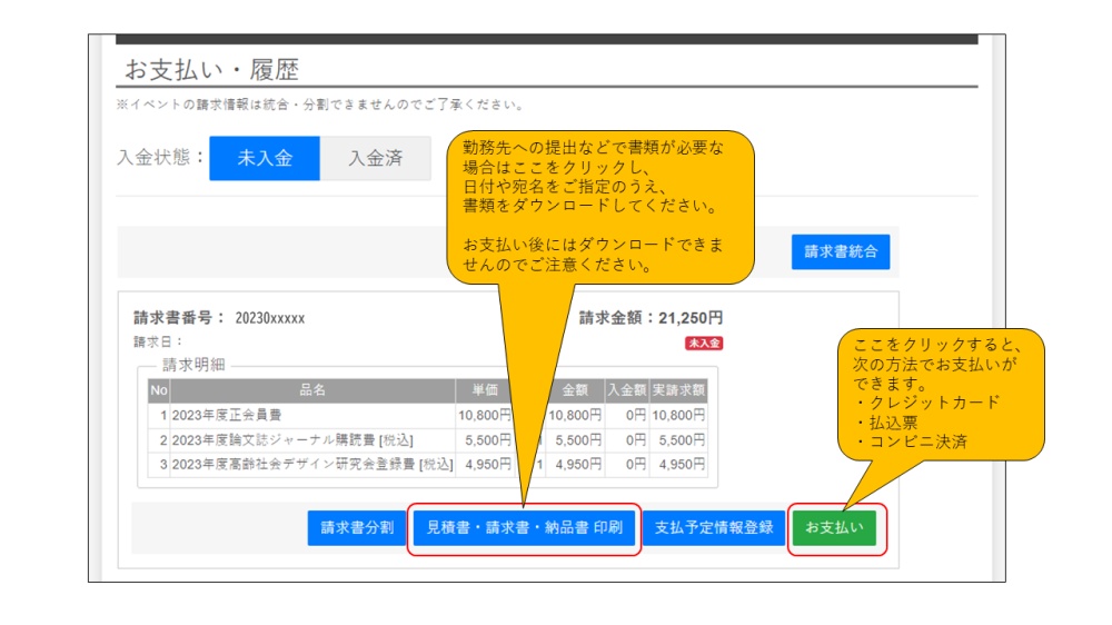 マイページ内に請求書を掲載前でしたら、この手続きにより次年度学生会員費で掲載されます。